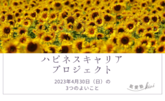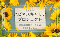 【お知らせ】5月のハピキャリワード実践! お知らせ 2023.05.01 【5月のハピキャリワード】アイコンタクト・スマイル・ビッグボイス 4月のハピキャリワード振り返りと、5月のハピキャリワード “アイコンタクト・スマイル・ビッグボイス” をアップしましたので、是非ご覧ください! 【振り返り】4月のハピキャリワード【名前を呼ぶ】4月は新しい出会いの多い季節です。新しい出会いがあると、自己紹介で自分の名前を伝え、相手の名前も知ることになります。知るだけでなく、相手の名前を覚えることで、コミュニケーションが取りやすくなります。だから、4月は、私が担当する授業のオリエンテーションや、新入社員研修[続きを読む] 【ハピキャリワードNo.3】アイコンタクト・スマイル・ビッグボイス私たちが普段、様々な人とコミュニケーションをとる際に意識したいのが、” アイコンタクト・スマイル・ビッグボイス ”アイコンタクト:相手の目を見ることで、誰に話しているのかが明確になりますスマイル:笑顔で話すことで、心が喜びますビッグボイス:大きな声で話すことで、感情や情報が正しく[続きを読む] コメントがあればお氣軽に!