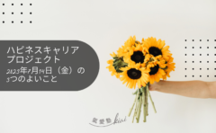 一日の中で幸せを感じた ”よいこと” ”うれしかったこと” を3つ綴ります。よいところをいつも考える習慣がつき、〔 幸せを感じる力 〕が磨けます。幸せを感じる力を磨くためのデイリーワークです!短い言葉で伝えるトレーニングとして、Twitterの文字制限140文字を意識します!