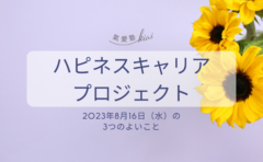 一日の中で幸せを感じた ”よいこと” ”うれしかったこと” を3つ綴ります。よいところをいつも考える習慣がつき、〔 幸せを感じる力 〕が磨けます。幸せを感じる力を磨くためのデイリーワークです!短い言葉で伝えるトレーニングとして、Twitterの文字制限140文字を意識します!