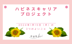 一日の中で幸せを感じた ”よいこと” ”うれしかったこと” を3つ綴ります。よいところをいつも考える習慣がつき、〔 幸せを感じる力 〕が磨けます。幸せを感じる力を磨くためのデイリーワークです!短い言葉で伝えるトレーニングとして、Twitterの文字制限140文字を意識します!