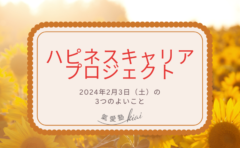 一日の中で幸せを感じた ”よいこと” ”うれしかったこと” を3つ綴ります。よいところをいつも考える習慣がつき、〔 幸せを感じる力 〕が磨けます。幸せを感じる力を磨くためのデイリーワークです!短い言葉で伝えるトレーニングとして、Twitterの文字制限140文字を意識します!