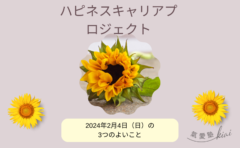 一日の中で幸せを感じた ”よいこと” ”うれしかったこと” を3つ綴ります。よいところをいつも考える習慣がつき、〔 幸せを感じる力 〕が磨けます。幸せを感じる力を磨くためのデイリーワークです!短い言葉で伝えるトレーニングとして、Twitterの文字制限140文字を意識します!