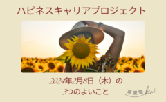 一日の中で幸せを感じた ”よいこと” ”うれしかったこと” を3つ綴ります。よいところをいつも考える習慣がつき、〔 幸せを感じる力 〕が磨けます。幸せを感じる力を磨くためのデイリーワークです!短い言葉で伝えるトレーニングとして、Twitterの文字制限140文字を意識します!