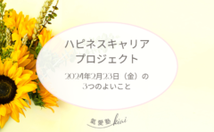 一日の中で幸せを感じた ”よいこと” ”うれしかったこと” を3つ綴ります。よいところをいつも考える習慣がつき、〔 幸せを感じる力 〕が磨けます。幸せを感じる力を磨くためのデイリーワークです!短い言葉で伝えるトレーニングとして、Twitterの文字制限140文字を意識します!
