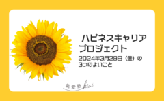 一日の中で幸せを感じた ”よいこと” ”うれしかったこと” を3つ綴ります。よいところをいつも考える習慣がつき、〔 幸せを感じる力 〕が磨けます。幸せを感じる力を磨くためのデイリーワークです!短い言葉で伝えるトレーニングとして、Twitterの文字制限140文字を意識します!