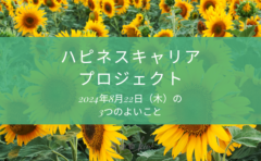 一日の中で幸せを感じた ”よいこと” ”うれしかったこと” を3つ綴ります。よいところをいつも考える習慣がつき、〔 幸せを感じる力 〕が磨けます。幸せを感じる力を磨くためのデイリーワークです!短い言葉で伝えるトレーニングとして、Twitterの文字制限140文字を意識します!